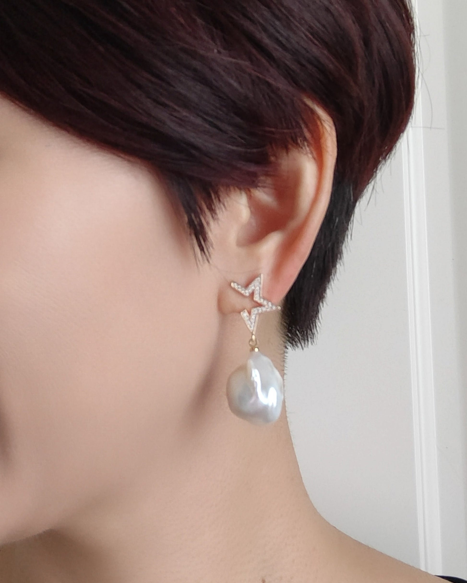 Ready to elevate your everyday style or add a touch of glamour to your next big event? These exquisite stud earrings are your answer. Each earring features a naturally unique baroque pearl paired with a sparkling rhinestone star, creating a captivating blend of organic beauty and dazzling sophistication.