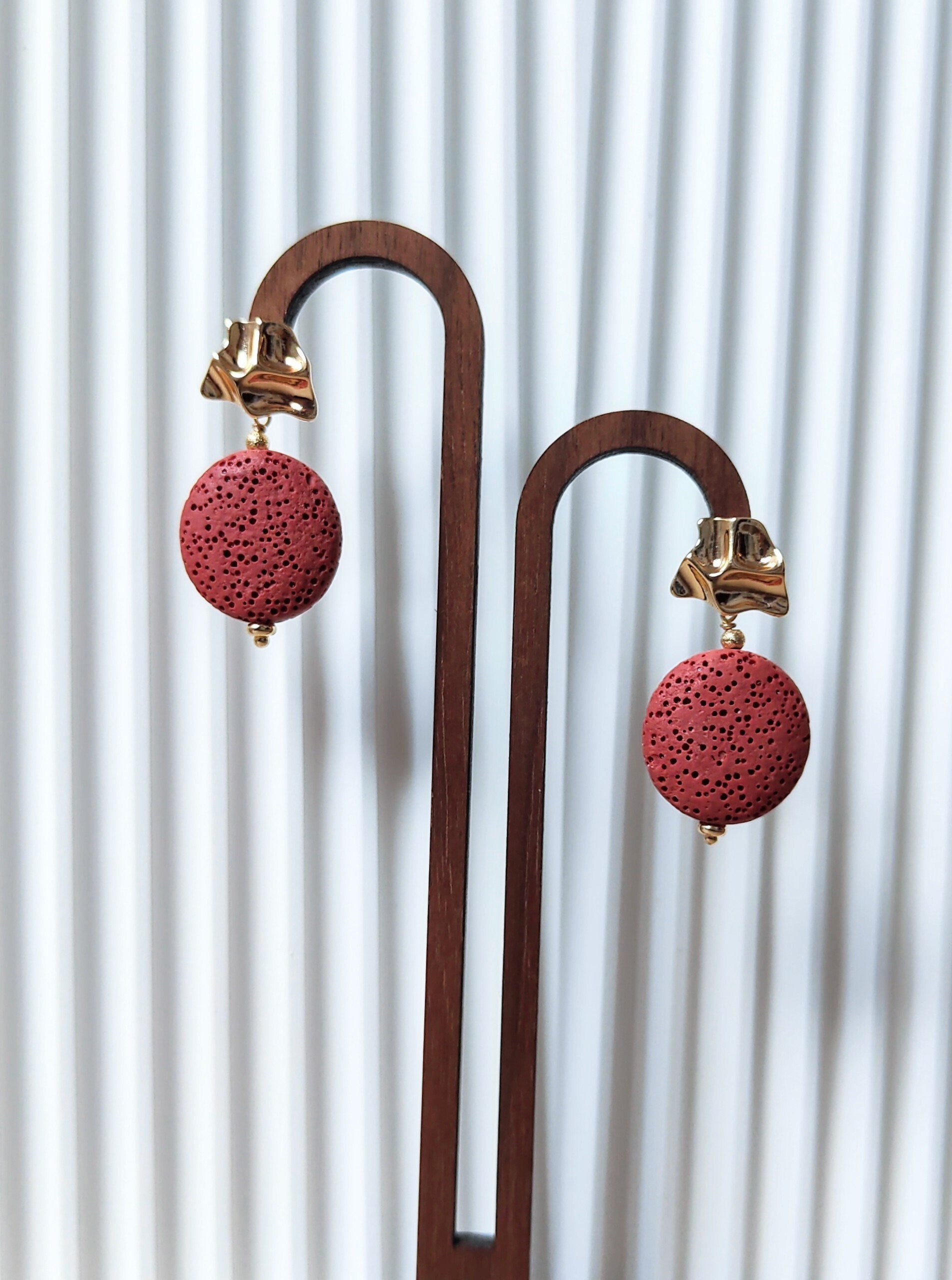 Discover our vibrant handmade lava stone earrings, crafted with care and available in eight bright, fun colors. Designed to be both beautiful and practical, these earrings effortlessly add a positive and stylish touch to any outfit. The natural lava stones also offer a unique feature—simply add a drop of your favorite essential oil to enjoy a soothing aroma wherever you go.