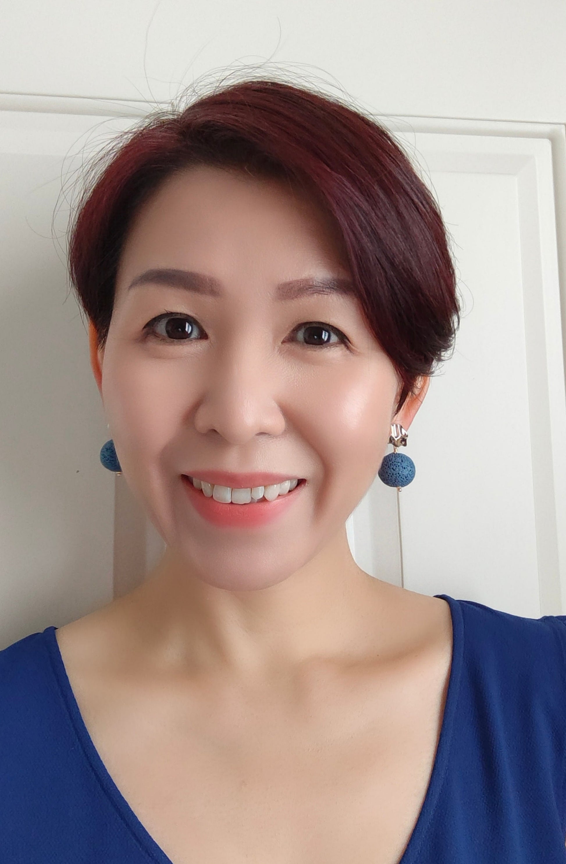 Sapphire Blue is described as "the truest and brightest medium blue". This vivid color filled this pair of earrings with joy and energy! This is a perfect pair of earrings that goes very well with Tee & jeans or just a simple dress. Put them on anytime when you want to add a dash of vibrance and positive vibe to your look!