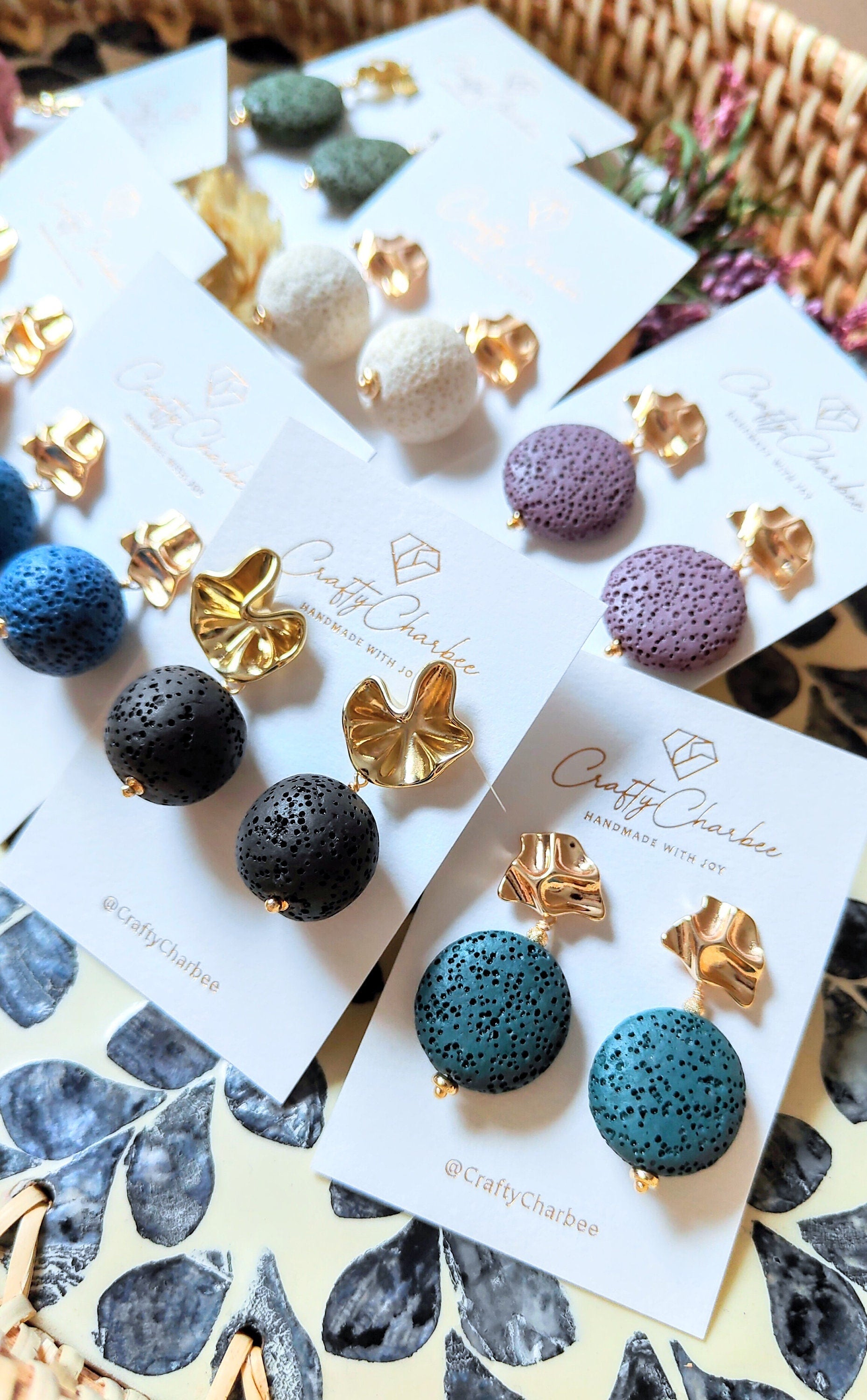 Discover our vibrant handmade lava stone earrings, crafted with care and available in eight bright, fun colors. Designed to be both beautiful and practical, these earrings effortlessly add a positive and stylish touch to any outfit. The natural lava stones also offer a unique feature—simply add a drop of your favorite essential oil to enjoy a soothing aroma wherever you go.