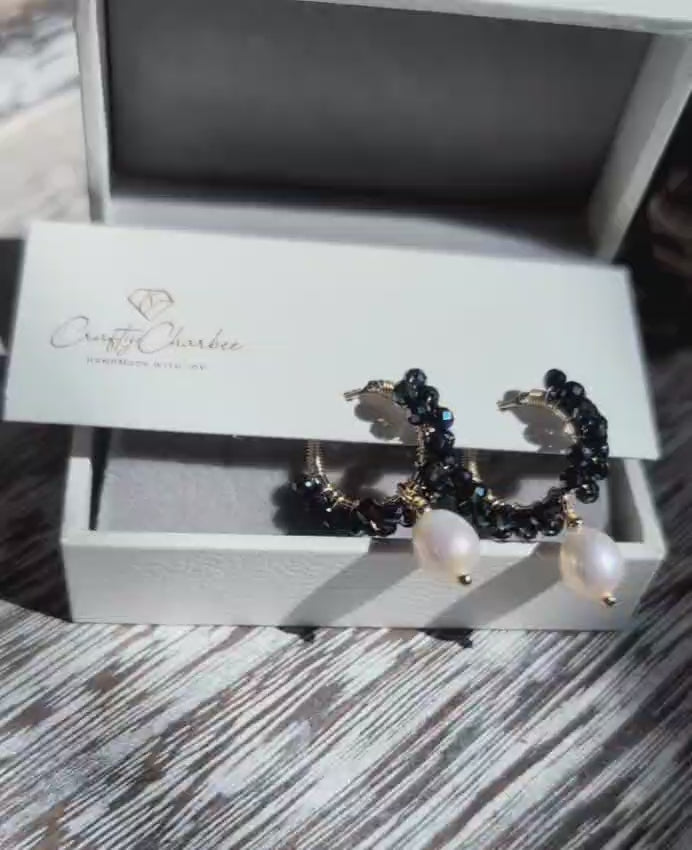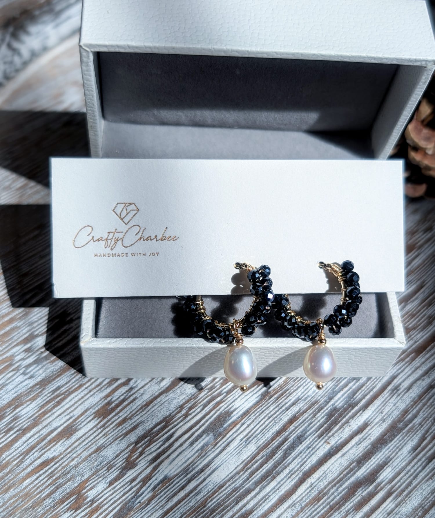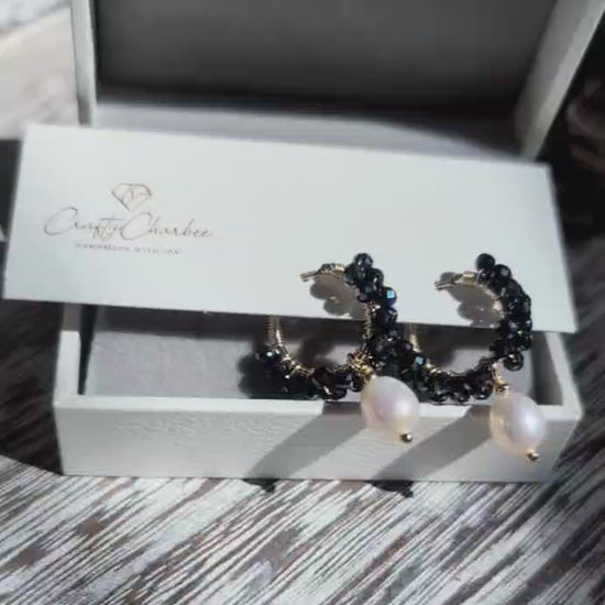 Add a touch of mystery and sophistication to your jewelry collection with our Black Spinel Pearl Earrings, part of The Sparkling Halo Collection. These bold and modern earrings feature dazzling black spinel gemstones arranged in a sleek semi-circle, complemented by a luminous freshwater pearl drop—a perfect balance of elegance and intrigue.