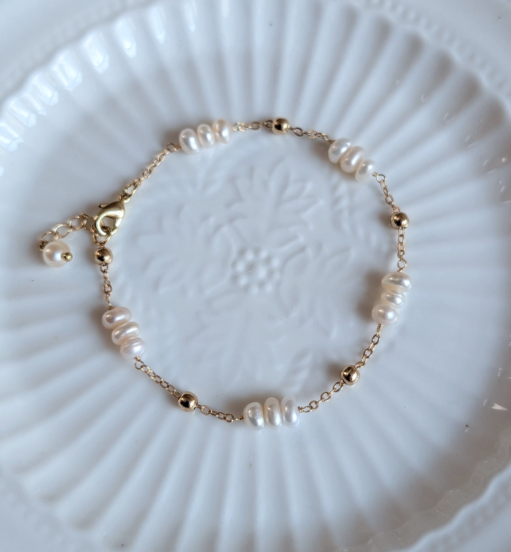 Pearl Trio 14K Gold Plated Bracelet, Freshwater Pearl